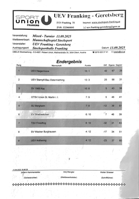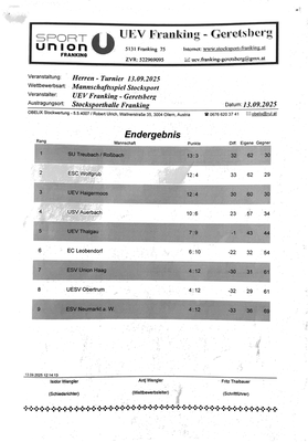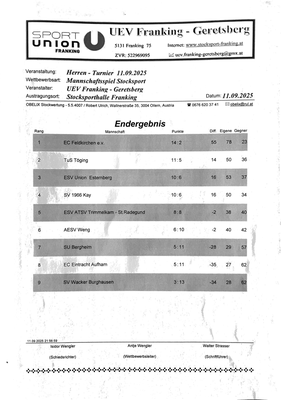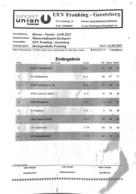 Franking Turniere Ausschreibung